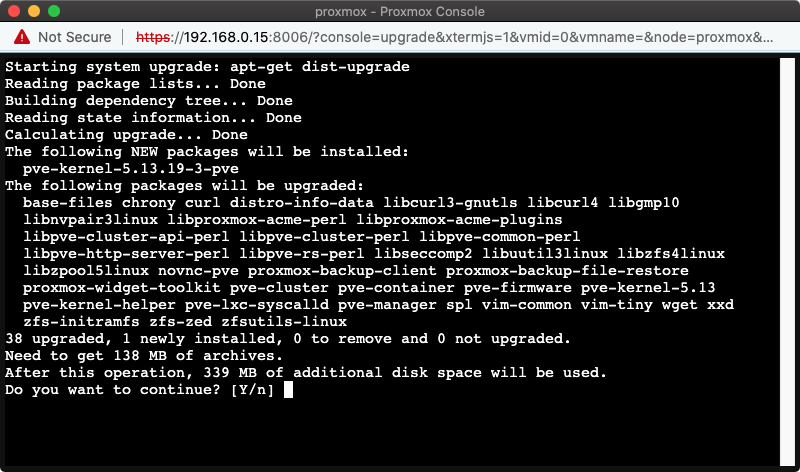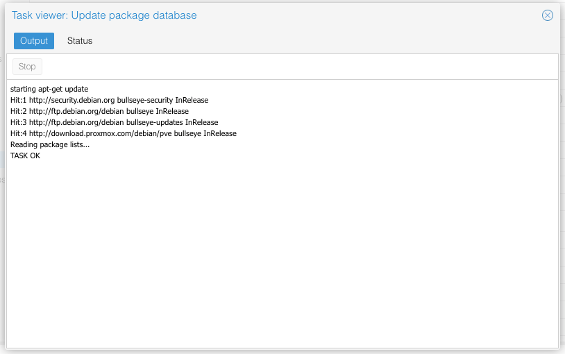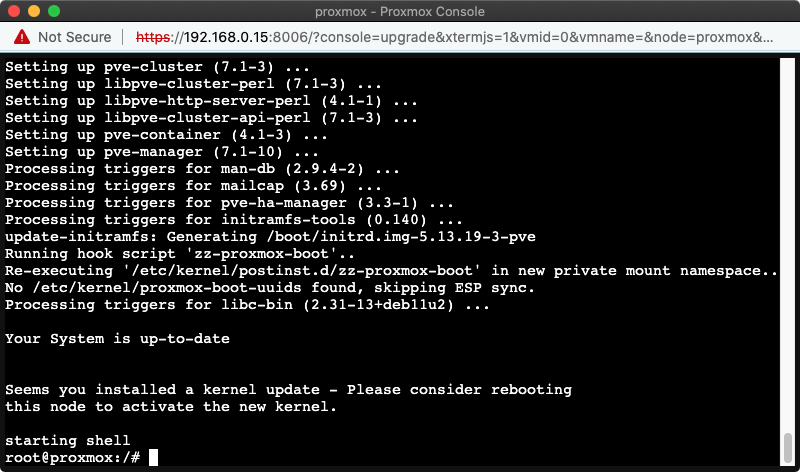 Sau khi cập nhật xong, bạn sẽ thấy thông báo “Your system is up-to-date”, Proxmox đã được cập nhật lên phiên bản mới nhất.