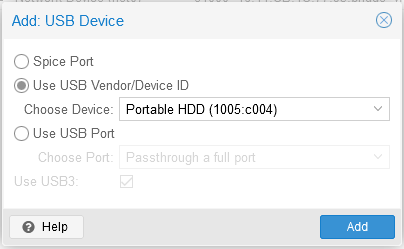 Đối với ổ cứng gắn ngoài (External HDD) cắm vào máy chủ qua cổng USB, mình thao tác y hệt như cách thiết lập USB Passthrough đã chia sẻ trong bài viết trước đây.