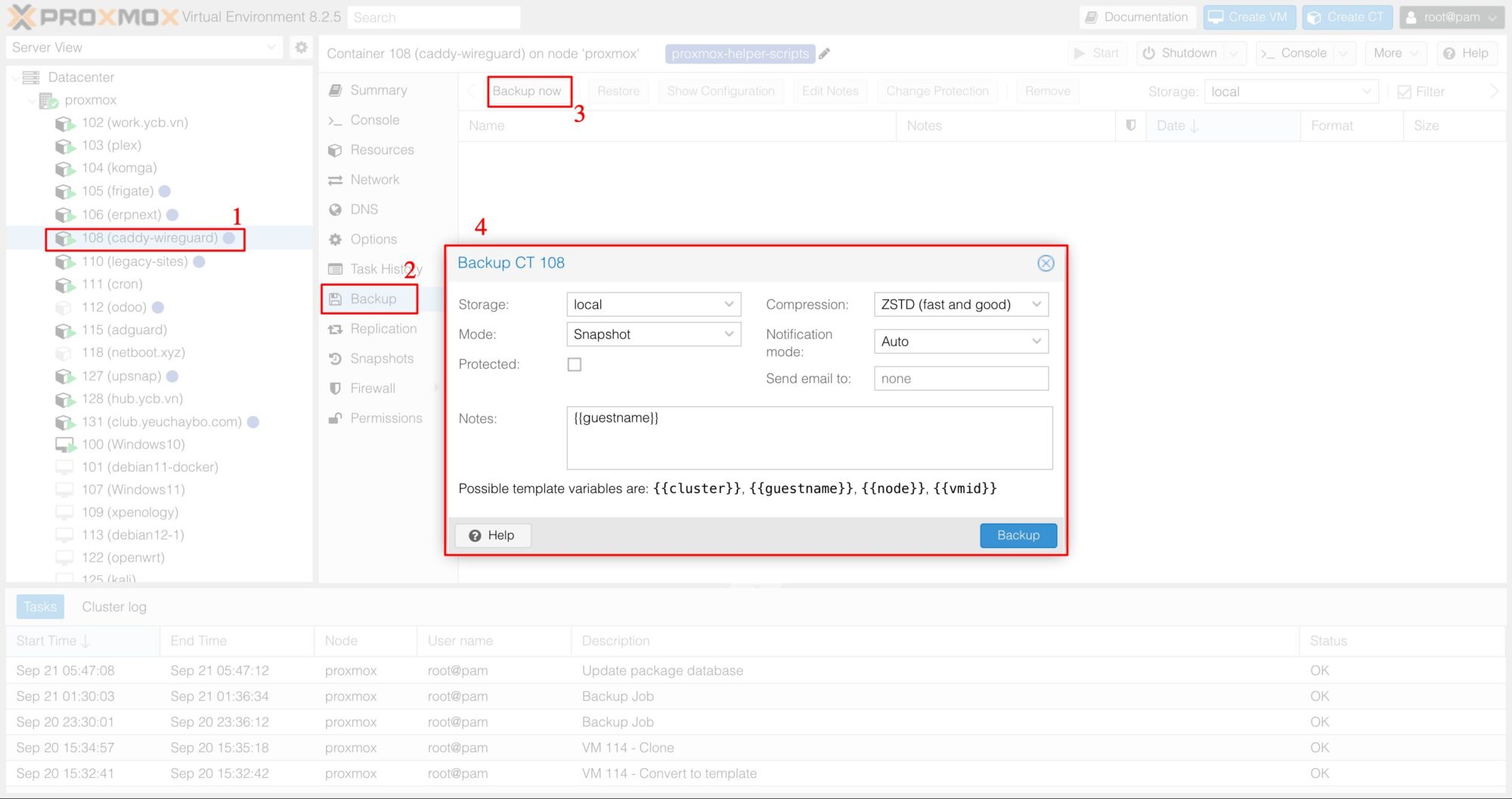 2. Lên lịch sao lưu VM / LXC