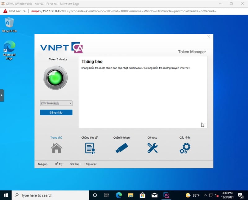 Khởi động lại máy ảo, truy cập vào Windows 10, mình đã thấy máy ảo nhận diện thiết bị USB: chữ ký số của VNPT-CA.