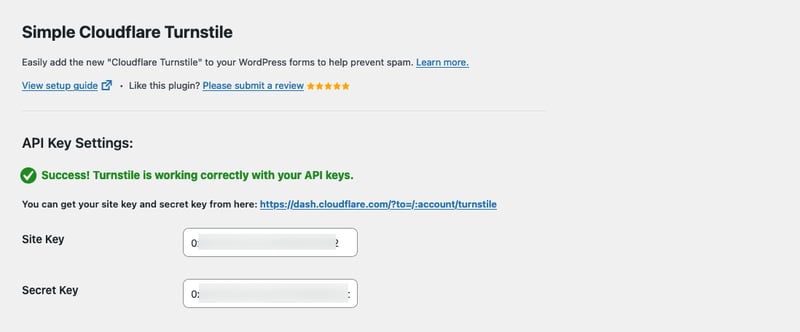 Cấu hình plugin Simple Cloudflare Turnstile