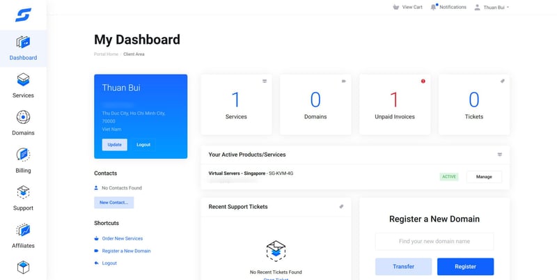 Còn đây là giao diện Control Panel để quản lý VPS: rất tươi mới và dễ sử dụng.