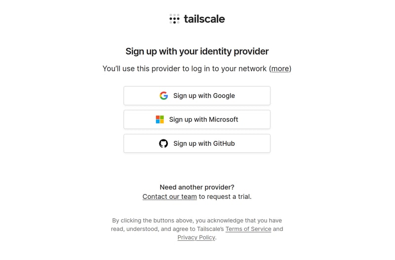 Để có thể sử dụng Tailscale, đầu tiên cần phải đăng ký tài khoản: https://login.tailscale.com/start