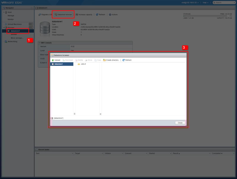 Để có thể cài đặt máy ảo trên ESXi, trước tiên mình cần phải upload file ISO của hệ điều hành (Linux / Windows) lên phân vùng chứa dữ liệu của ESXi - được gọi là datastore.