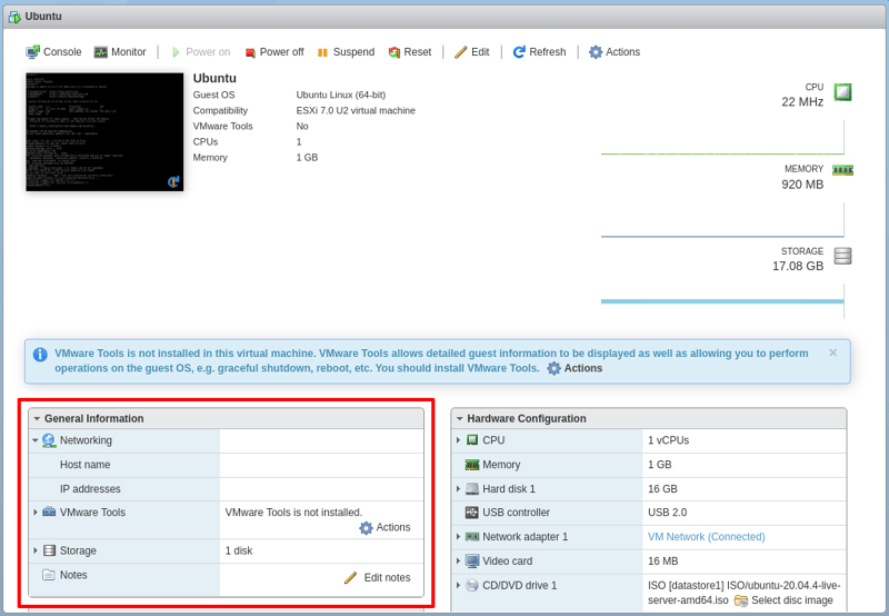Sau khi cài đặt xong Ubuntu Server lên máy ảo, mình sẽ cài đặt thêm VMWare Tools để máy ảo có thể giao tiếp với máy chủ ESXi.