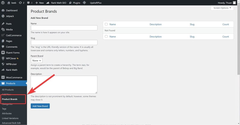Mục Products đã có thêm 1 mục mới với tên gọi Products Brands.