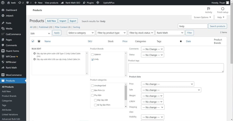Truy cập trang quản lý Products và thiết lập thương hiệu cho các sản phẩm tương ứng.