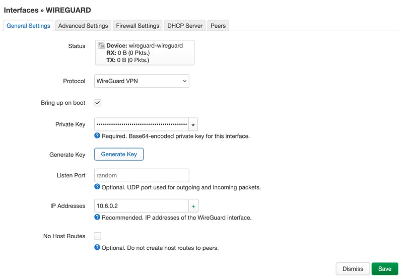 Private Key: Nhập vào Private Key của file cấu hình WireGuard client
