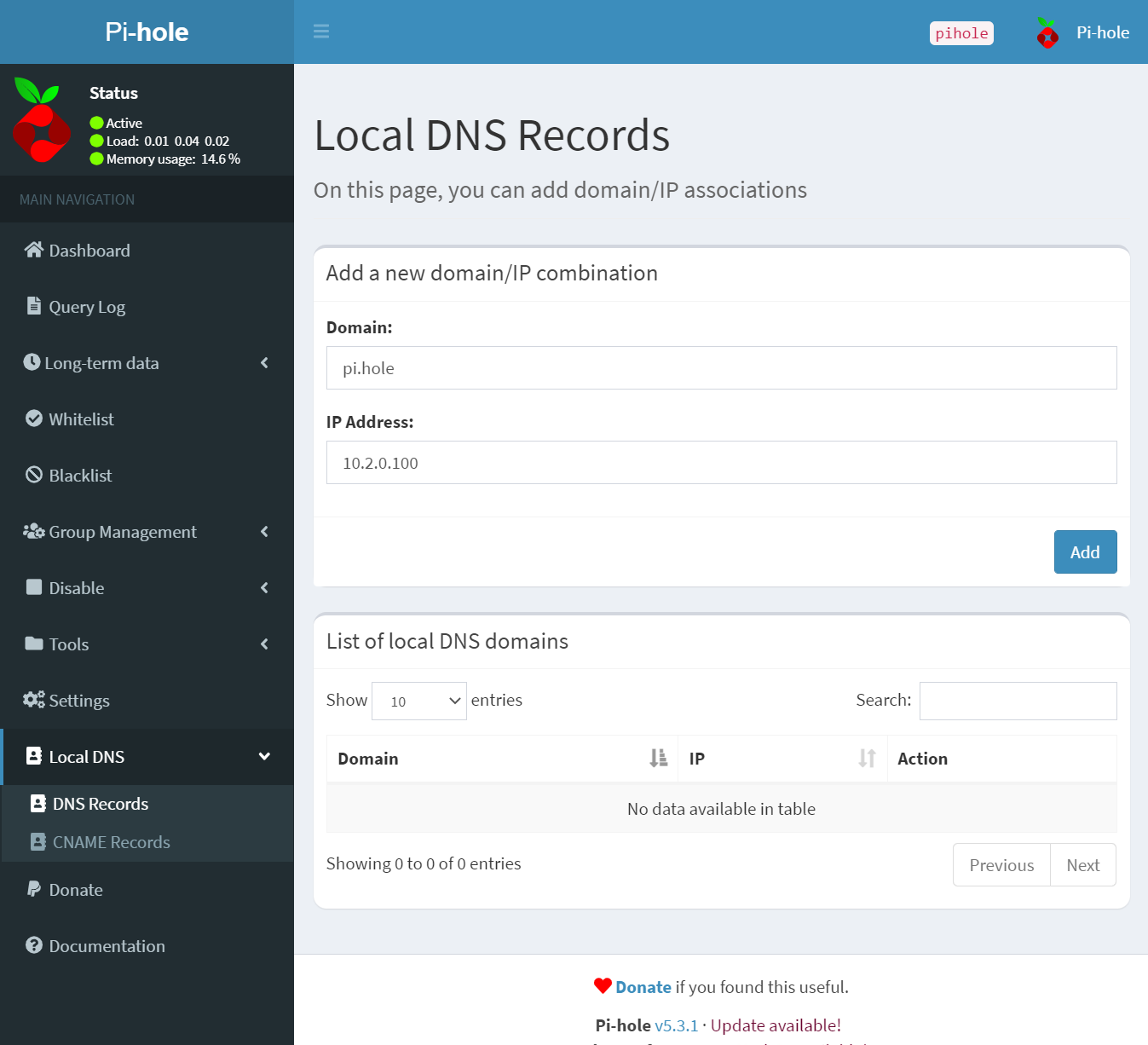 http://10.2.0.100/adminThông thường mình sẽ thiết lập thêm Local DNS Records để sau này truy cập vào Pi-Hole theo tên miền http://pi.hole cho dễ nhớ.