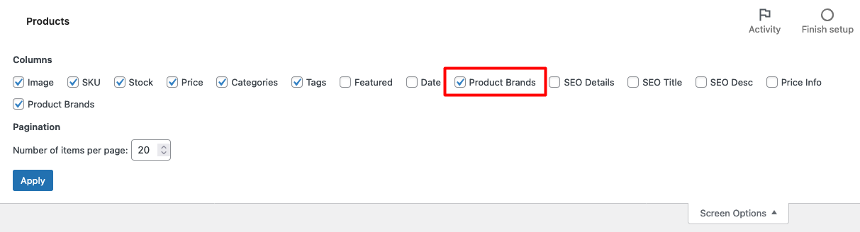 3. Ẩn cột Product Brands mặc định