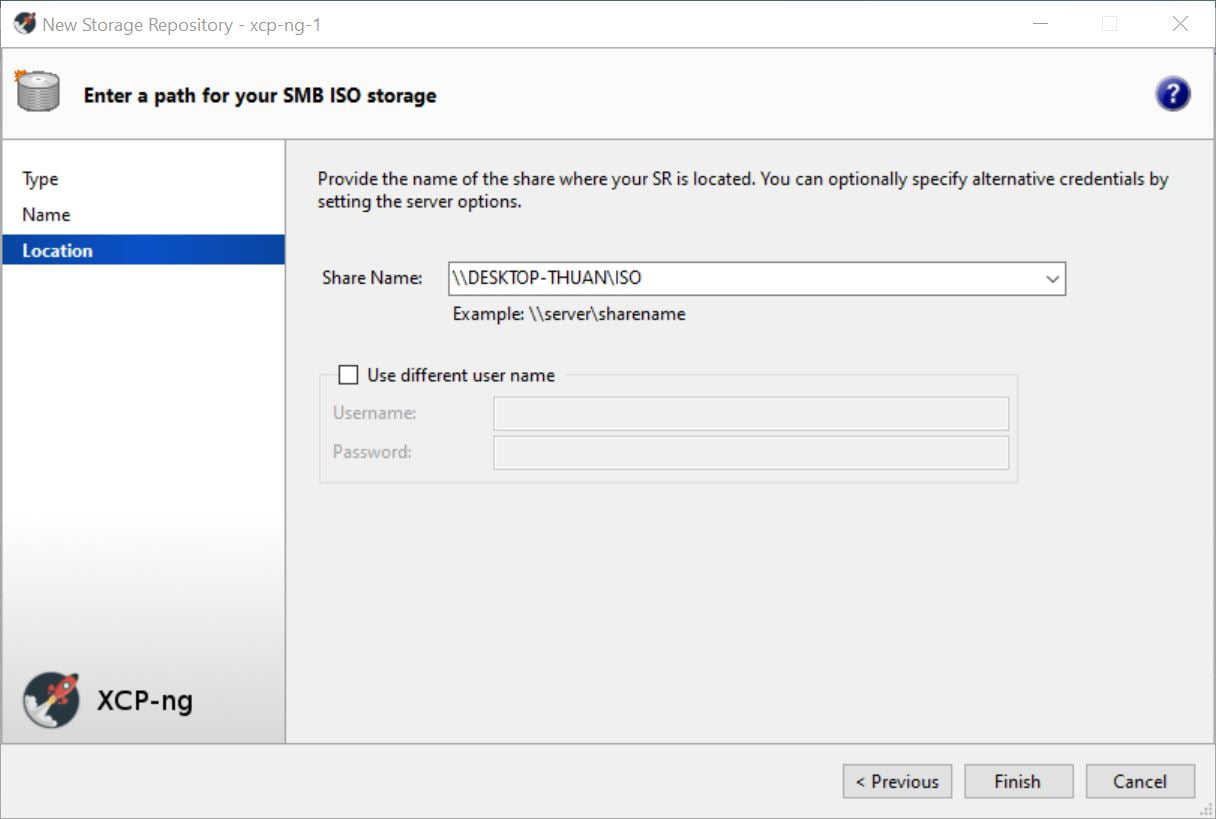 Nếu có 1 máy tính khác đang chạy Windows có sẵn thư mục lưu trữ các file ISO. Bạn hãy thiết lập chia sẻ (Sharing) cho thư mục đó trên Windows. Sau đó qua XOA, chọn SMB