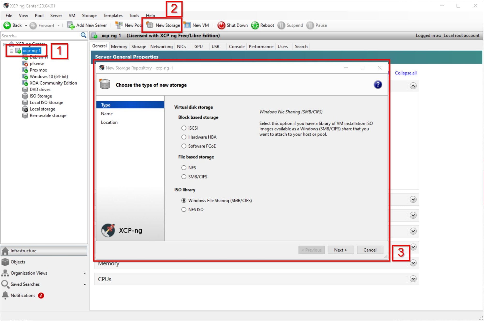 Bạn còn có thể tạo khu vực lưu trữ cho XCP-ng bằng cách sử dụng XCP-ng Center.