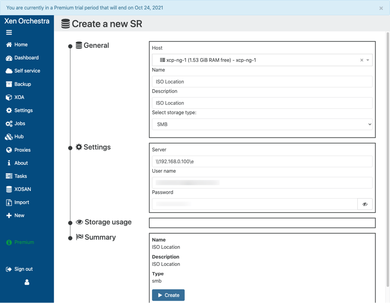 Để có thể cài đặt hệ điều hành cho máy ảo, chúng ta cần phải thiết lập khu vực lưu trữ dành cho các file *.iso (ISO SR). Đây sẽ nơi lưu các file iso của hệ điều hành.