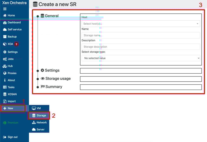 - Bấm vào New Storage trên Menu bar